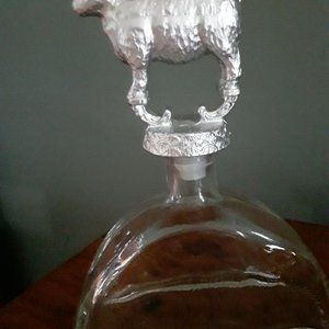 Unique Vintage Glass Decanter with Metal Cow Stopper