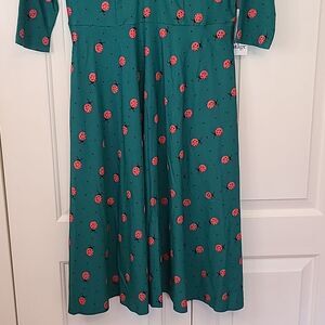 Green, Stretch Poly Dress. Keyhole Neck Cute Ladybug Print. New with tags