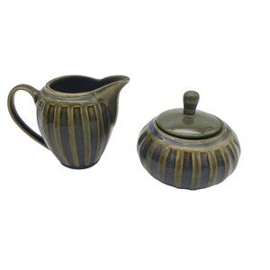 Unique Vintage MCM Avacado Blue Striped Sugar And Creamer Set Good Condition
