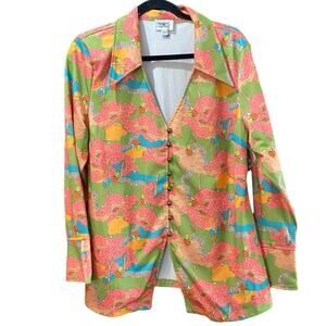 Unique Vintage Multicolor Long Sleeves Button Front Blouse Top Size 16