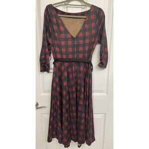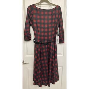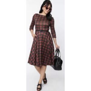 Unique Vintage NWT Burgundy & Black buffalo plaid knit Devon swing Dress Med 6-8