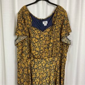 Unique Vintage Navy Blue&Yellow Floral Tie Front 1940’s Swing Midi Dress Sz.5x/26