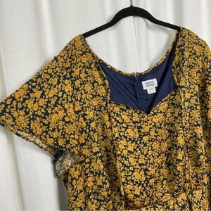 Unique Vintage Navy Blue&Yellow Floral Tie Front 1940’s Swing Midi Dress Sz.5x