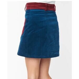 Unique Vintage Navy and Burgundy Corduroy Mini Skirt 2X NWOT