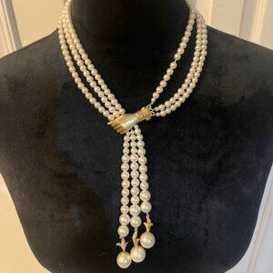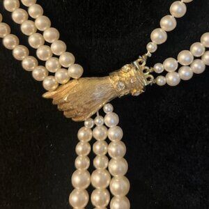 Unique Vintage Pearl Necklace with Yellow Gold Hand Clasp