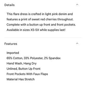 Unique Vintage Pink Denim & Cherry Print Fit & Flare Dress XL 14 NWOT