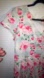 Elegant dress with pink floral pattern. Features a flattering V-neck and short sleeves.