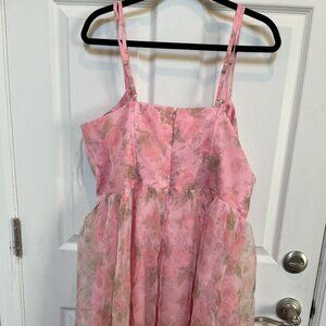 Unique Vintage Pink Floral Organza Swing Dress 1950s Sz 1x