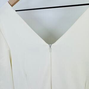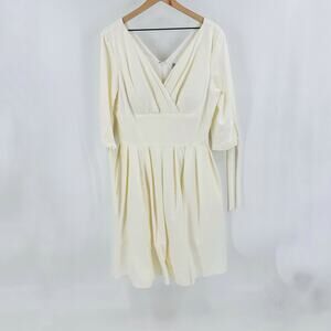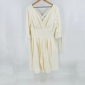 Beautiful Unique Vintage cream fit & flare dress featuring a flattering wrap-style bodice, pleated skirt, and elegant retro silhouette. Zip-back closure. Tag size XXL but runs small — best for someone who typically wears XL or 1X (see measurements if included).