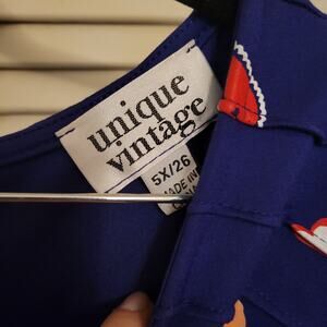 Unique Vintage Plus Size 5X Halloween Fit and Flare Dress Blue Pumpkin Print
