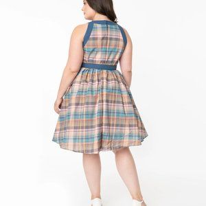 Unique Vintage Plus Size Multicolored Plaid Maxine Swing Dress - 2X/18