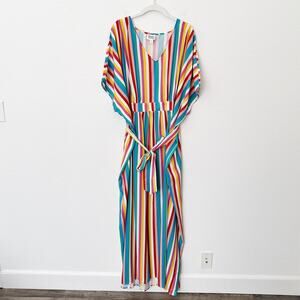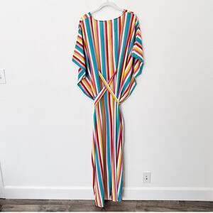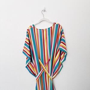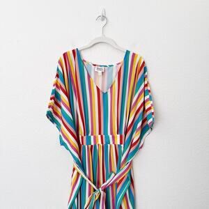 [Unique Vintage] Rainbow Striped V-Neck Kaftan Coverup Dress One Size Fits Most