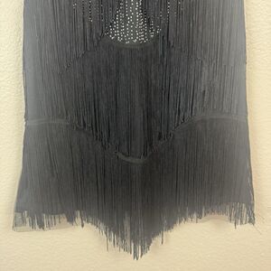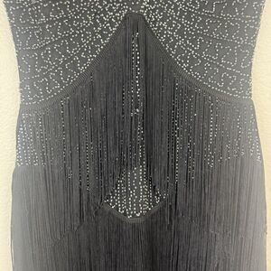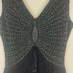 Unique Vintage Retro 1920s Fringe Beaded Mini Flapper Dress Black Silver Small
