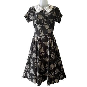 Retro 40s 50s Style Floral Dress with Lace Collar