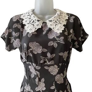 Unique Vintage Retro 40s 50s Style Floral Dress with Lace Collar Size XS