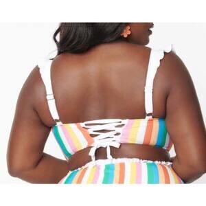 Unique Vintage Retro Rainbow Stripe Push Up UW Swim Bikini Top 1X NWOT