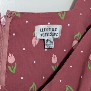 Unique Vintage Rose Pink Tulip Print Lamar Swing Dress