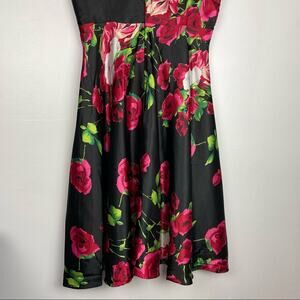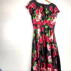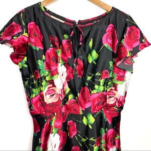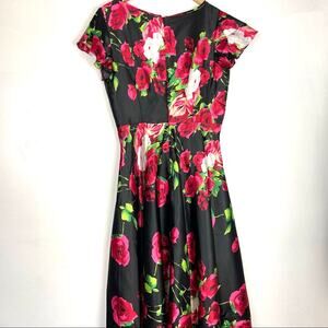 Unique Vintage | Rose Print Dress Satin Like Black Pink Red White