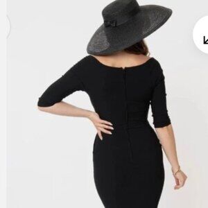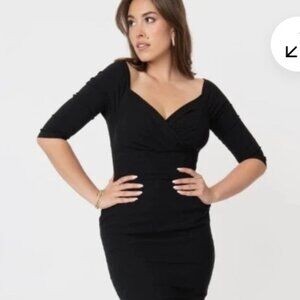 Unique Vintage Shaliene Wiggle Dress Black 1950s, Pencil Dress #