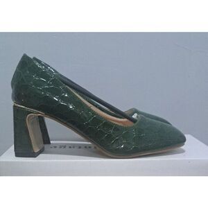 Unique Vintage Shoes Size 5 Green Faux Leather Crocodile Embossed Gold Detail Pumps