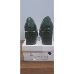 Unique Vintage Shoes Size 5 Green Crocodile Embossed Pumps