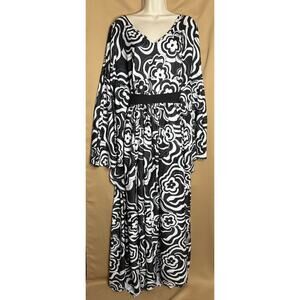 Unique Vintage Smak Parlour Black Psychedelic Floral Belted Caftan 1X NWOT