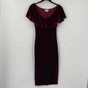 Unique Vintage Sophia Wiggle Dress Stretch Velvet Ruffled Off Shoulder Bodycon S