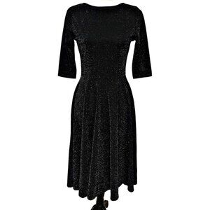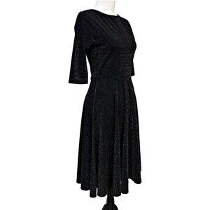 Unique Vintage Sparkle Fit & Flare Midi Dress Stretch A-Line Glitter Holiday MED