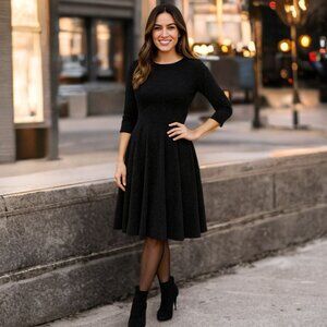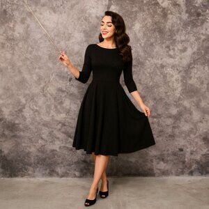 ✨Shine in timeless elegance with this Unique Vintage Black Sparkle Dress a classic retro-inspired piece designed for effortless glamour. Crafted in a flattering fit-and-flare silhouette, this midi-length dress features a soft stretch fabric infused with shimmering metallic threads for the perfect touch of sparkle.