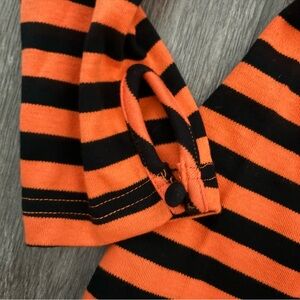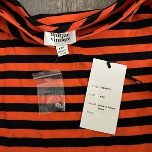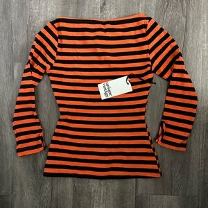 Cute vintage black and orange stripe top. 3/4 sleeve with keyhole and button detail. Brand new, never worn and tags attached. Has replacement button included