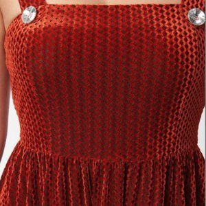 Orange Honeycomb Velvet Pinafore Swing Dress