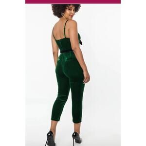 Unique Vintage Velvet Holiday Cropped Jumpsuit Emerald Sz L #8