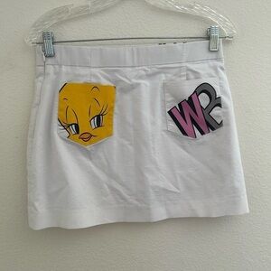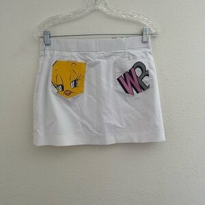 Skort white where the Bugs Bunny Tweety Bird see additional pictures for measurements. Thanks for looking happy shopping this side zip and the material has a nice stretch to it.