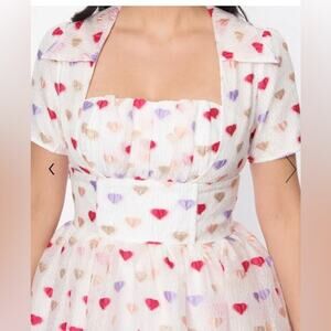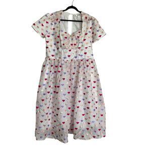 Unique Vintage White Dress with Hearts Crinkle Libby Swing Dress - Size 1X/16