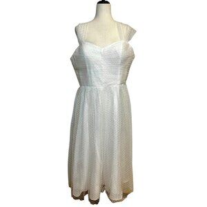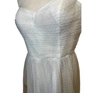 Unique Vintage White Swiss Dot Tulle Midi Dress XXL | Retro Bridal Party Cocktai