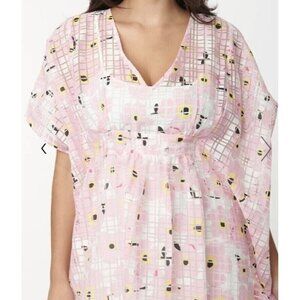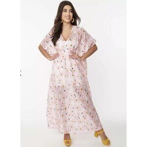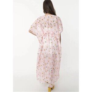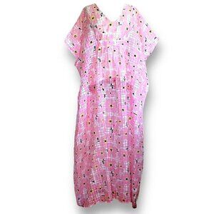 Unique Vintage Womens Burton Caftan Dress OS 1 Sz Pink Floral Burnout Retro 70s