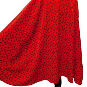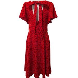 Unique Vintage Womens Size L/10-12 Red Black Polka Dot Bow Tie Midi Swing Dress