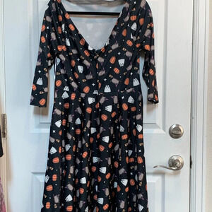 Unique Vintage X Pusheen, Halloween, Black, purple, white, orange, Retro, Devon, 50'S, women Swing Dress. NWT,