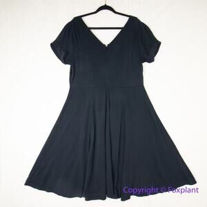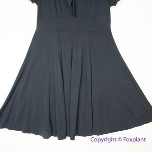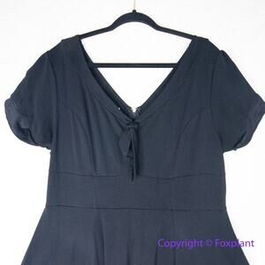 Unique Vintage black fit and flare dress short sleeves with tie bow, size 2XL