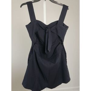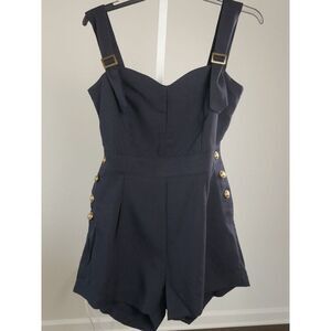 Unique Vintage Heat Wave Romper | L | Navy | Tie Back | Side Buttons | Retro