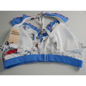 Unique Vintage Nautical Bikini Top | 1X | Ruffle Trim | Hook Back | Removable Pa