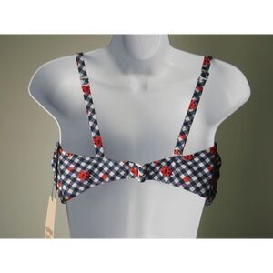 Unique Vintage Navy Gingham Ladybug Bikini Top L Swim Retro Pin-Up
