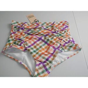 Unique Vintage Pastel Madras Gingham Monroe high-waisted Swim Bottom Bikini 2X