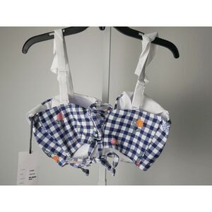 Unique Vintage Plus Size Navy Gingham & Floral Southampton Swim TOP 1X