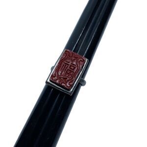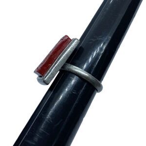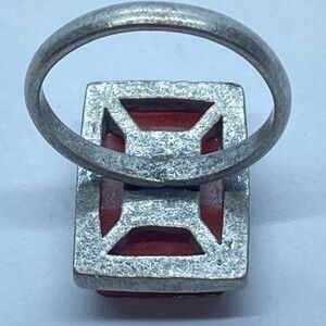 Unique Vintage Silver Tone Faux Cinnabar Rectangular Statement Ring - Size 6