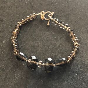 Measures approximately 7.5" from end to end and secures with a sterling silver toggle clasp. I was unable to find any markings but all metal components have been tested and verified to be solid sterling silver. Fun, faceted, brown smoky quartz gemstone beads from end to end with a few small hobknob sterling silver spacer beads mixed in.