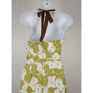 This sensational jumpsuit, in collaboration with Franklin Loufrani’s Smiley®, is crafted in a lightweight woven fabric that dances with a pale green and white print of the Smiley® face in a yin and yang pattern. Outfitted with a self tie halter, back zipper, and side pockets.