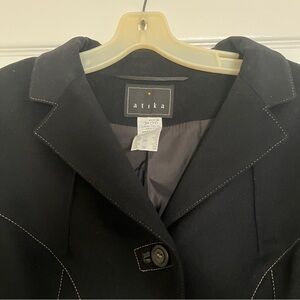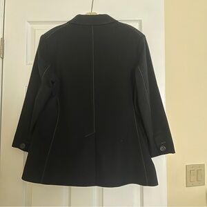 Unique 90s black wool coat with brown contrast stitching. Made in France.