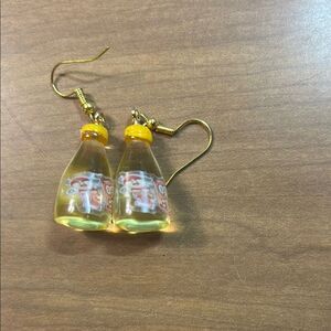 Charming earrings shaped like small bottles with a yellow accent. Perfect for adding a quirky touch to any outfit.