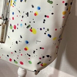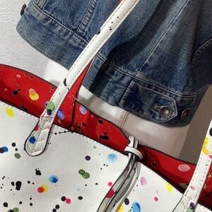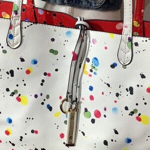 Unique and Fun - Reversible White and Red polka dot - paint splatter Tote Bag
